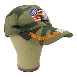 Bald Eagle USA Flag Camo Strapback Cap Embroidered Curved Brim Baseball Hat