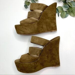 Baldan Tan Brown 3 Strap Suede Slide On Wedges 11