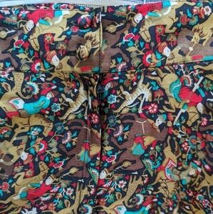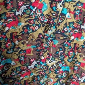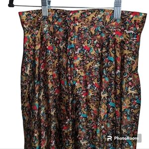 Beautiful 100% silk vintage full skirt with pockets and back zipper. Hunters and animals design. 13" waist.
