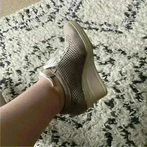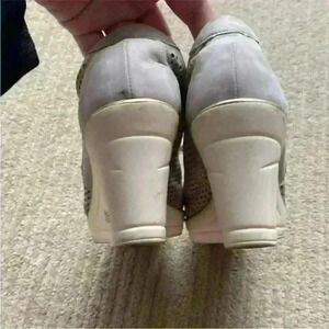 Baldinini, Italian brand, nude sneakers platform shoe, visible wear and tear