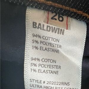 Baldwin Ultra High Rise Skinny Jeans Dark Blue 26 Women NEW. 189 Inseam =29.5