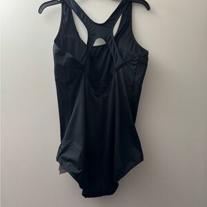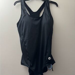 Dive into style and performance with the Baleaf Black One-Piece Swimsuit, featuring a sleek racerback design and durable, chlorine-resistant fabric. This streamlined piece offers excellent support with its wide shoulder straps, making it perfect for both competitive swimming and leisurely laps. The subtle brand emblem adds a touch of elegance to this classic swimwear essential. New with tags and protective liner. Women’s size 42 which the size chart is showing it is 2XL