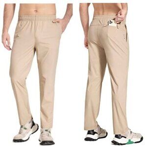 Baleaf Men's Running Stretch Golf Workout Pants Water Resistant Khaki Large NWT