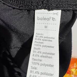 BALEAF women’s size medium hiking pants black 14 1/2 inch waist 10 and three-quarter inch rise 29 inch inseam has little drawstring tabs at the bottom two cinch