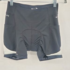 NWT Baleaf Womens Padded Black Cycling Shorts Size Medium. Padded gel seat for comfort, silicone grip strips at the hem and two slip pockets. Black with white accents. I don't see any snags, marks or tears. All measurements are taken flat.