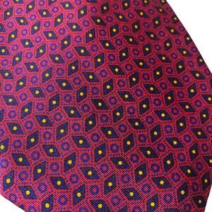 Balenciaga 100% Silk Necktie LUXURY Made in Italy Red with Blue Geometric Tie