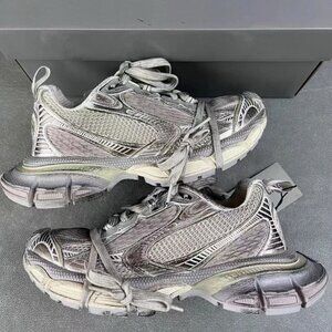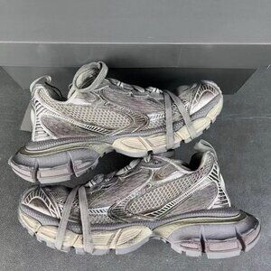 Women's gray and white sneakers, trendy design, perfect for everyday wear.