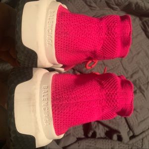 Balenciaga speed trainers, 100% authentic worn a couple of times. Love them super comfortable but have way to many shoes and these are one of the ones collecting dust. Very beautiful & def make a statement. Purchased at Neiman Marcus Houston TX @ the galleria mall. Size 41 which is a US size 11. Comes with original shoe box, gift receipt and dust bag. Needs a bit of a clean but nothing serious.