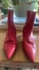 Balenciaga red leather ankle booties. Designed for both style and comfort, they are perfect for any occasion. Moderate wear at soles; moderate creases at tops size 5.5