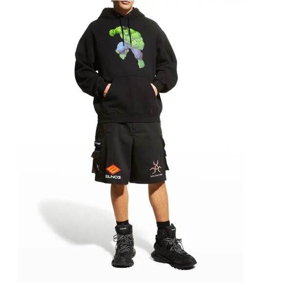 Balenciaga AUTHENTIC Unisex Marvel Hulk Print Hooded Sweatshirt