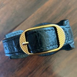 Balenciaga Arena Giant Black Leather Bracelet w Gold Hardware + Buckle Closure