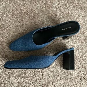 Worn once authentic denim square toe mules from designer balenciaga. Great quality with thick rubber heel. Super unique and cool- sold out online- purchased from Nordstrom