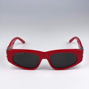 Balenciaga BB0095S 016 BRAND NEW Sunglasses Red Silver Logo Grey Cat Eye Unisex