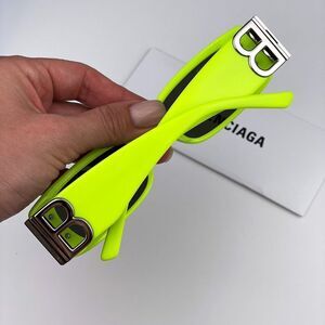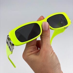 🔥 Balenciaga BB0096S 008 Sunglasses Yellow Silver Logo Grey Rectangle Unisex