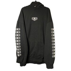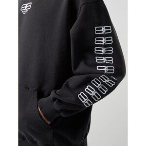 Balenciaga BB-Embroidered Oversized Hoodie in Black Large New Unisex Sweatshirt
