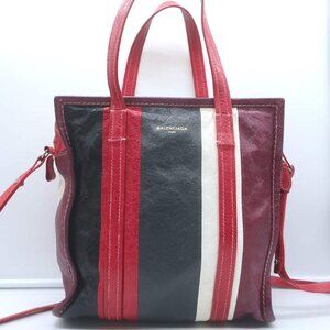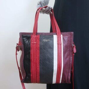 Balenciaga Bazar S Shopper Tote Red/Multi Striped Leather Crossbody Bag