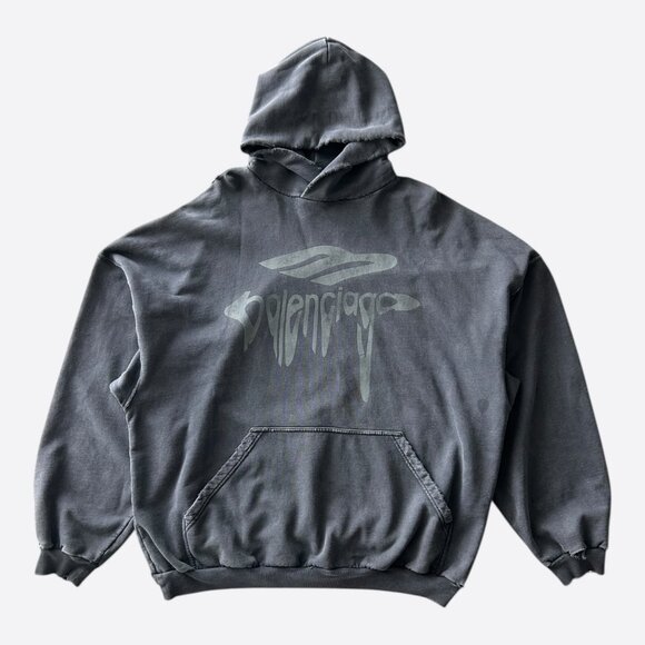 Balenciaga Black & Grey Liquified Logo Hoodie
