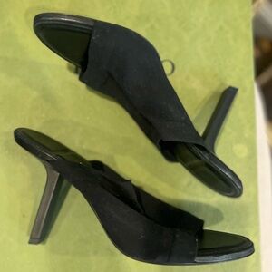 Chic black mules with a sleek design. Perfect for elevating any outfit.