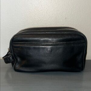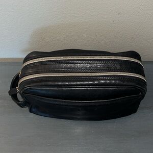 Sleek and stylish black leather Toiletry bag, perfect for everyday use. Durable and versatile, this bag complements any outfit, and will hold so many of your things and keep them organized.