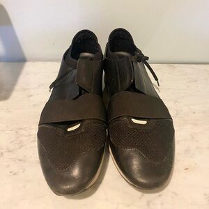 Balenciaga Black Leather and Mesh Race Runner Sneakers Size 13 VGUC