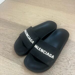 Black sole with embossed Balenciaga logo. Textured for grip. Made in Italy.