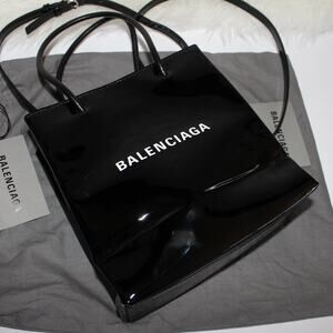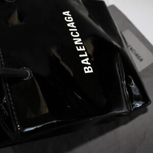 Balenciaga Black Patent Leather XXS Shopping Tote Crossbody Bag New