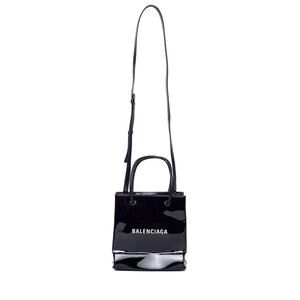 Balenciaga Black Patent Leather XXS Shopping Tote Crossbody Bag New