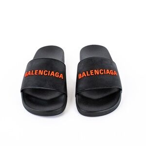 Balenciaga Black Red Pool Slide Sandals Men’s Smooth Rubber Logo $395