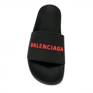 Balenciaga Black Red Pool Slide Sandals Men’s Smooth Rubber Logo $395