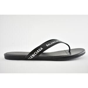 Balenciaga Black White Leather Logo Thong Slide Slip On Sandal Flip Flop Flat 36.5