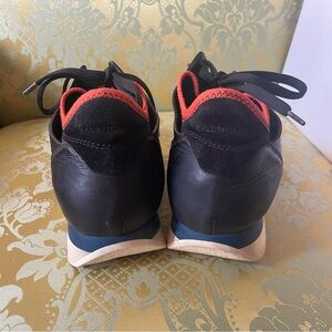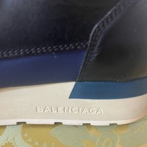 Stylish Balenciaga sneakers in black with pink accents. Comfortable and trendy design. Perfect for everyday wear.