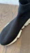 Sleek black knit upper with contrasting white sole. Modern and versatile style.