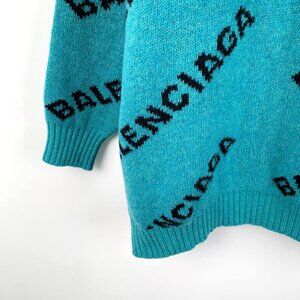 Balenciaga Blue Logo Virgin Wool Round-Neck Long-Sleeve Knitted Sweater XS Made