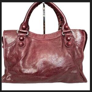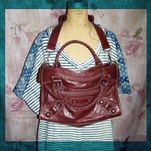Balenciaga Burgundy City Bag Medium Giant hardware Brogue Purse Satchel