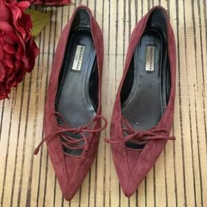 Balenciaga Burgundy Suede Flats Pointed Toe 38.5