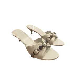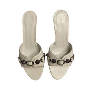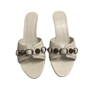 Balenciaga Cagole Leather Slide Sandals Buckle Embellished Kitten Heel Sz 39