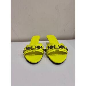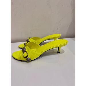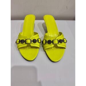 Balenciaga Cagole Studded Buckle Leather Slip On Mules Neon Yellow Women EU 37.5