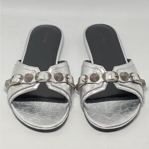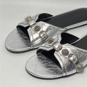 Balenciaga Cagole Metallic Leather Flat Sandals size 40