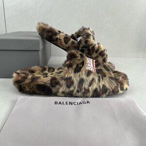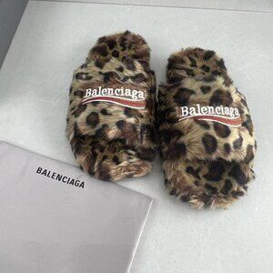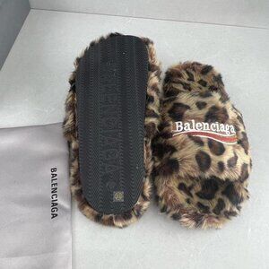 Faux Fur Balenciaga Winter Cheetah Print Slides (Like New)