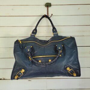Balenciaga City Bag with Large Brass Hardware, Marine Blue