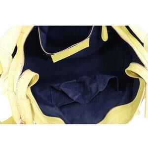 Description: preloved, signs of wear, rubbing, scuffs, scratches, residue to interior and exterior of bag. See photos. Stunning pop of color. Rocked it in Miami.