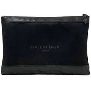 Balenciaga Clip Navy Leather Clutch Blue zipper Bag Black