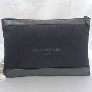 BALENCIAGA Navy Blue Clip Clutch Bag Black Leather zipper Includes a Certificate of Authenticity!