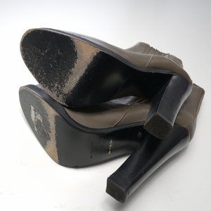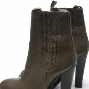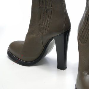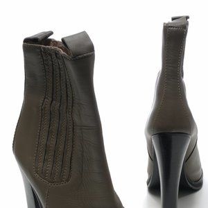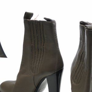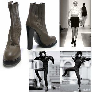 Balenciaga Collectors / Archive ankle boots - runway-era Nicolas Ghesquière for Balenciaga iconic short boots in an earthy gray tone. A sharp, sculptural silhouette with a rounded toe, subtle platform, and a striking high block heel that gives height while still feeling stable. Chelsea-style elastic side panels make them easy to slip on/off and keep the look clean and streamlined.