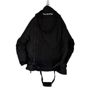 Balenciaga parka featuring large zip pockets with a detachable strap