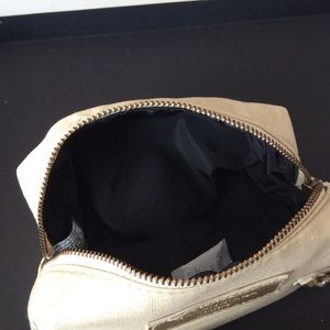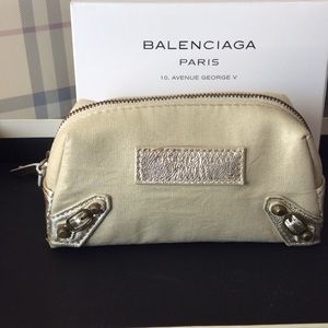 New Balenciaga Cosmetic Pouch. Tan-gold colored pouch with a black interior.