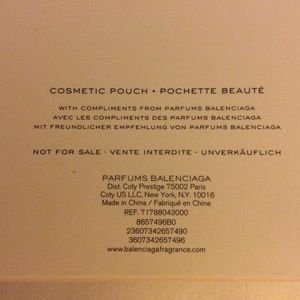 @saracavey it's a pouch I got with a fragrance, I can take a picture of the box if you'd like but there's nothing inside the pouch other than the material and cleaning tag. I'll post more pictures.