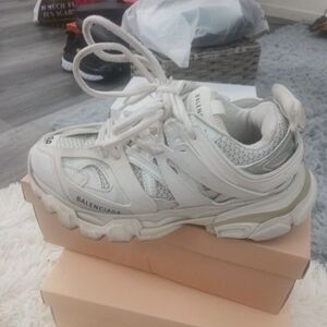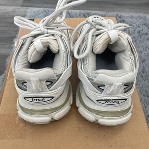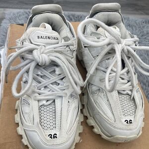 Sleek Balenciaga sneakers in cream and white. Ideal for sporty looks.