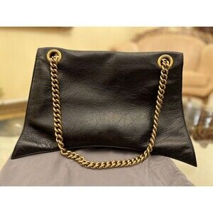 Balenciaga Crush Large Crackled Leather Black Shoulder Bag 💯% Authentic 🥇