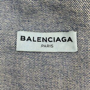 Balenciaga Deep Blue Washed Denim Jacket Lapel Single-Breasted Long Sleeves Cott